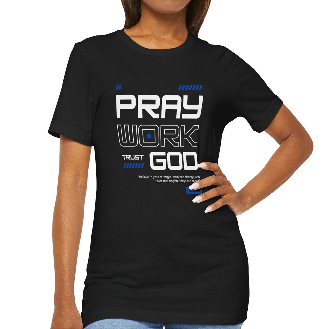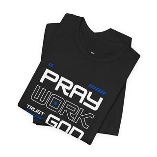 Elevate your wardrobe with the Pray Work Trust Women's T-Shirt. Embrace the power of prayer with this simple yet meaningful design. Show your trust in a higher power and inspire others with this versatile t-shirt. Made with high-quality materials for lasting comfort.