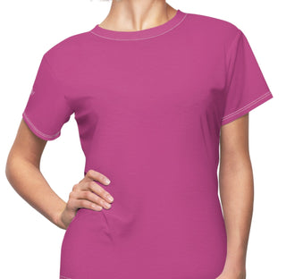 The Mulberry Pink Women's Fitted Tee is made from 100% polyester, providing durability and quick drying capabilities. Its side seams offer structural support for a shape-retaining fit, while the ribbed knit collar and shoulder tape ensure elasticity and prevent stretching. With a tagless design, this tee offers added comfort for all-day wear.